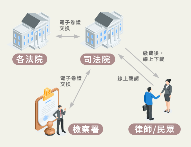 民眾、律師於線上做聲請,繳費後亦可於線上下載卷證。 - 院檢資料交換