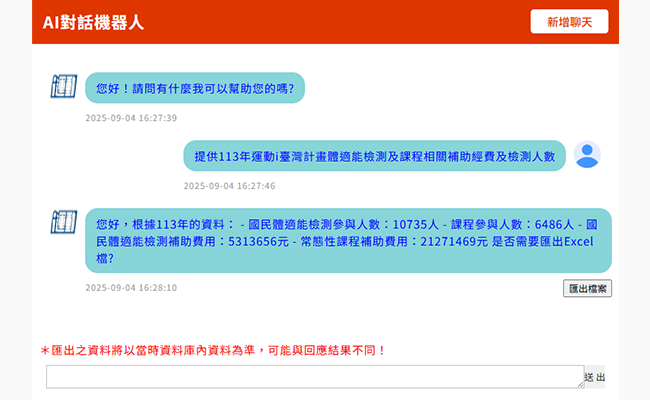 - 長官可自行透過AI一問一答,隨時掌握即時之統計數據。