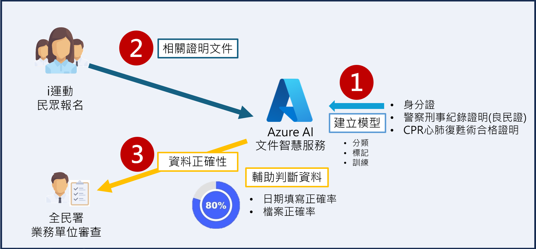 - 透過AI技術輔助審核,系統能即時辨識民眾上傳的檔案是否正確,協助審核人員迅速做出判斷。原本需耗時 7天的審查流程,現已可在 3天內完成,大幅縮短作業時間並提升效率。