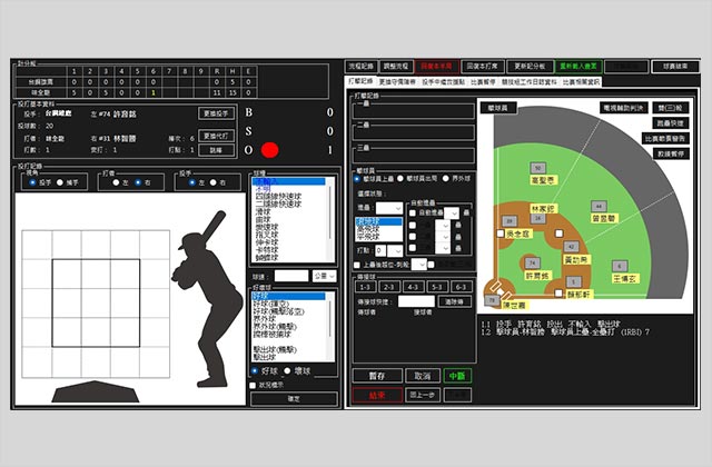- 系統可在比賽進行中即時記錄各項攻守數據,並透過網路同步更新,提升資訊的即時性與準確性。