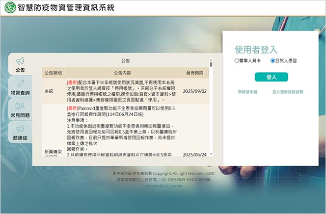 衛福部疾病管制署智慧防疫物資管理資訊系統