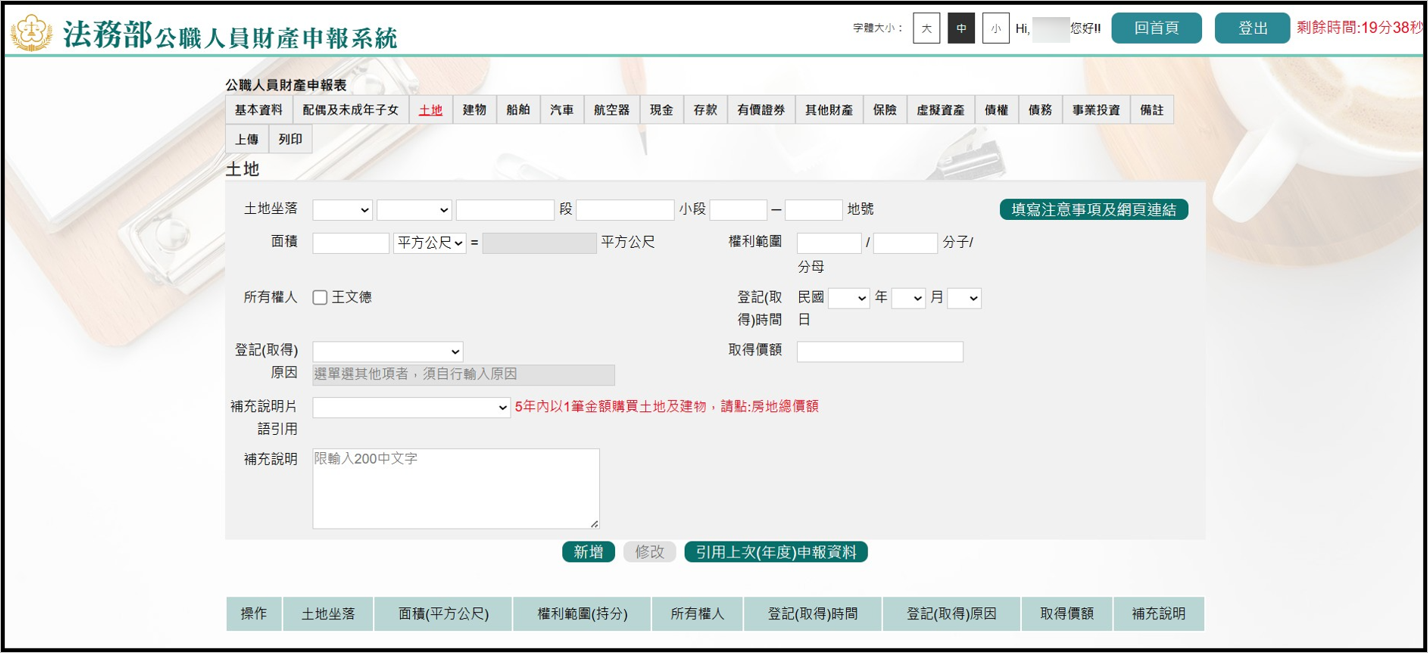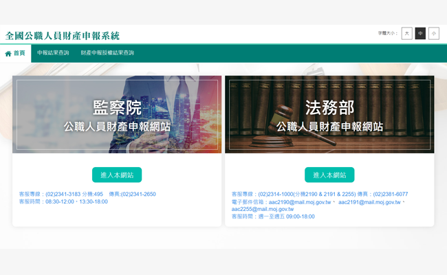 法務部/監察院公職人員財產申報系統