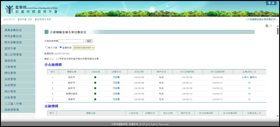 - 支援與監察院、法務部、財政部等機關資料交換。