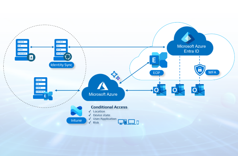 協助企業汰換老舊地端郵件系統,全面佈署 Exchange Online 雲端郵件服務,結合 Microsoft 365 整體雲端架構,實現郵件與協同作業平台的無縫整合。