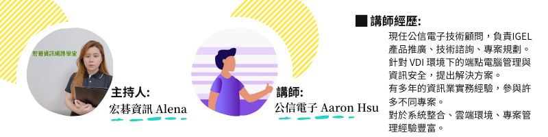 本次邀請擁有針對 VDI 環境下的端點電腦管理與資訊安全,已有多年實務經驗的專業顧問!