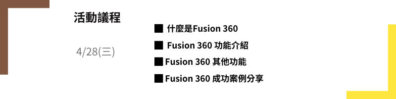 此次課程將會帶各位認識什麼是Fusion 360,跟以往的AutoCAD有什麼差別,