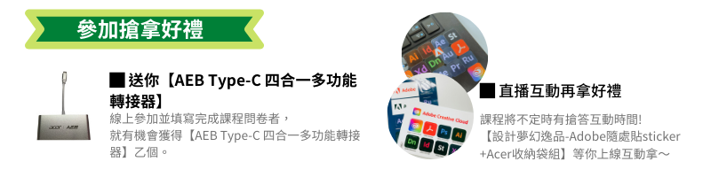 無論你在哪裡,帶上你的筆記,參與Adobe年度盛會,即刻報名此堂[宏碁資訊網路學堂]!
