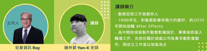 身為設計人,應該知道Adobe After Effects (簡稱「AE」)是功能強大而專業的影音特效軟體,常見於影視特效、動畫特效..等製作,應用於電影、廣告、動畫、影音、舞台投影、遊戲、VR、AR、博物館導覽..等動態影音後製特效製作。