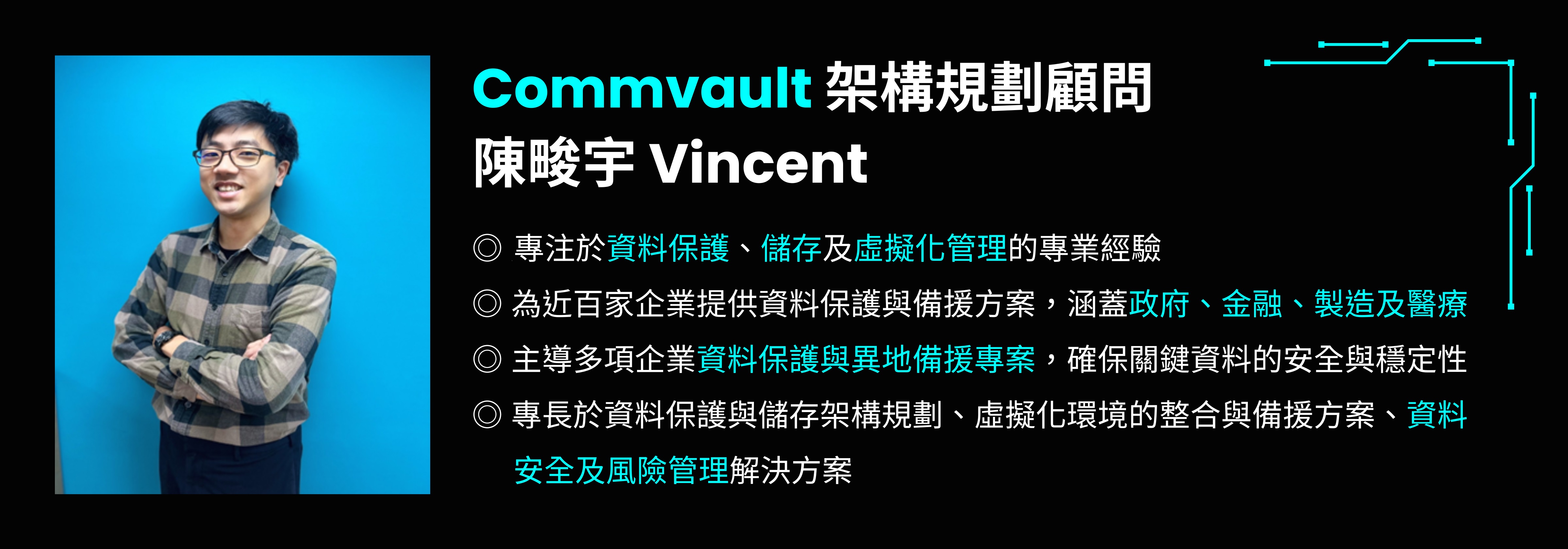 透過本課程,將深入了解 Commvault Cloud 的核心功能與應用價值,了解如何借助 AI 技術實現資料保護和網路彈性最佳化,並快速掌握潔淨還原與自動化恢復技術,以應對當前及未來的網路安全挑戰。