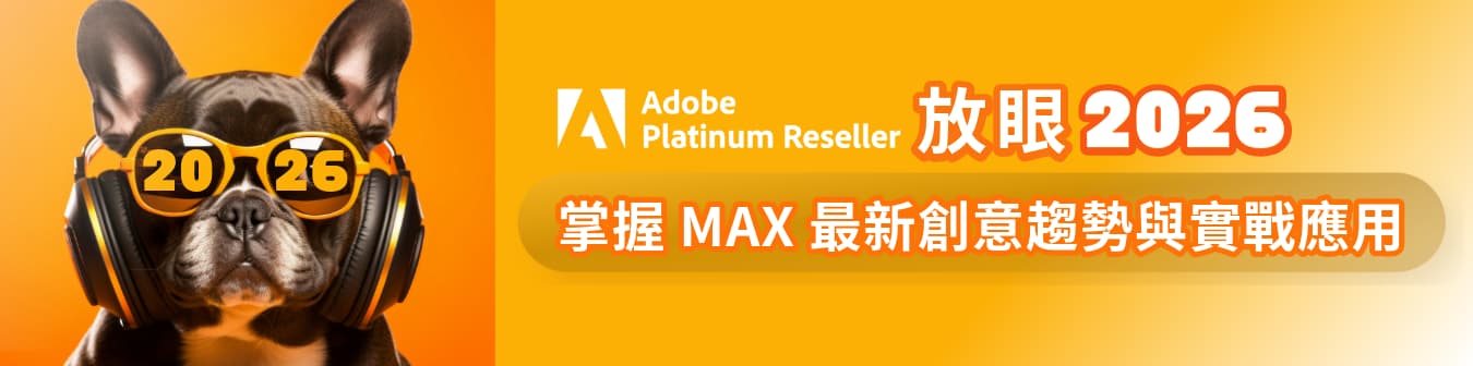 此次課程將協助與會者快速掌握 2026 年的重點更新,從 MAX 2025 的亮點出發,深入解析最新應用場景與創意趨勢。讓你在 AI 與設計融合的浪潮中,不只是工具的使用者,更是創新思維的引領者。