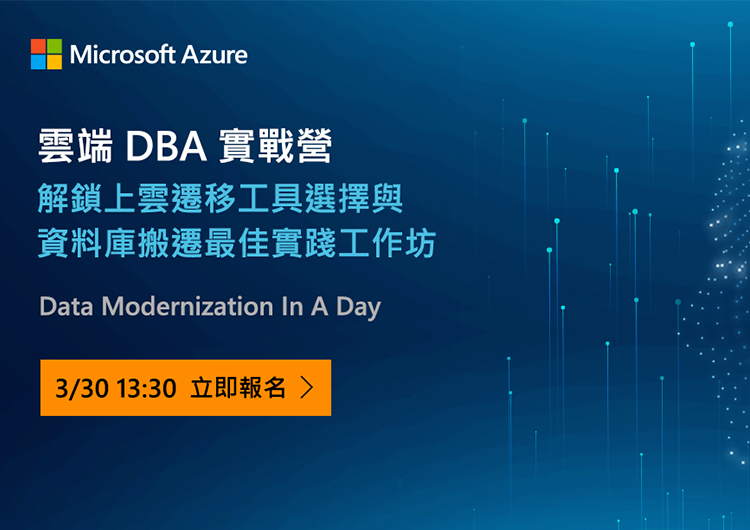 《雲端 DBA 實戰營》是專為技術決策者、資料庫管理人員和資料工程師所舉辦的半天實戰體驗營。企業在數位轉型的旅程中,如何謹慎評估公司最重要的資料資產,用最有效的方法、選擇最適合的遷移工具。我們將分享雲端資料庫的最佳實踐,教你如何克服痛點,有效利用正確的資料搬遷工具,建置雲端資料庫架構、評估搬遷後效能表現、與建置數據雲端解決方案。
