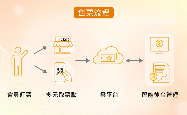 提供多樣化的售票模式,包含劃位、季套票、商品套票、秒殺機制、電子發票、付費會員及等級、折價券派送、動態電子票券和Line 轉贈等,滿足節目活動售票行銷的多元需求。