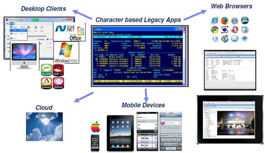 將原本4GL的應用系統GUI、WEB、MOBILE化,保留原本的程式邏輯,迅速的將原有的系統華麗變身